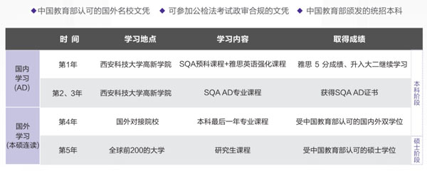 西安科技大学高新学院是陕西省首家经教育厅批准,中国(教育部)留学服务中心审核,英国苏格兰学历管理委员会授权,将AD项目纳入全国统招计划内招生的高等院校