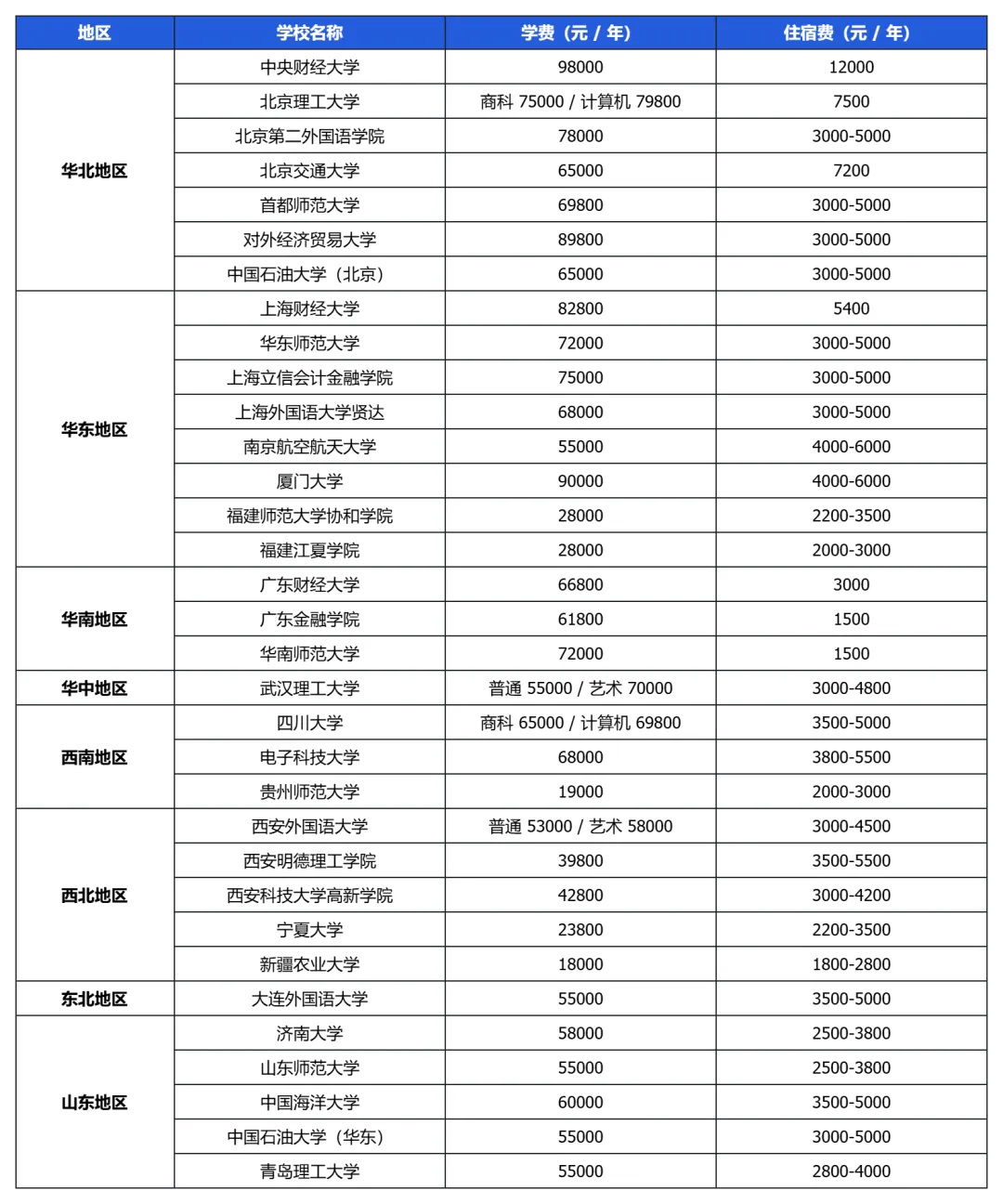 - 性价比之选:福建江夏学院、广东金融学院、济南大学等院校收费更为亲民,且具备扎实的财经学科基础,适合注重实用性与成本控制的家庭。