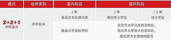 伍伦贡大学2+2+1项目是由集美大学诚毅学院联合外方院校签署合作协议,采取“2+2+1”培养模式,以互认学习过程、互认课程、互认学分的方式举办的出国留学项目。学校授权国外院校驻校单位完成招生咨询、升学对接、留学申请、签证等事宜。