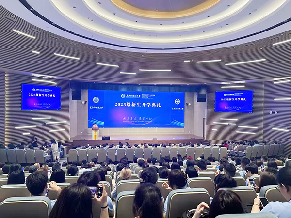 9月8日,2025级上海外国语大学国际本科松江校区新生开学典礼在全球国别区域大楼报告厅顺利举办,近400名新生参与开学典礼。
